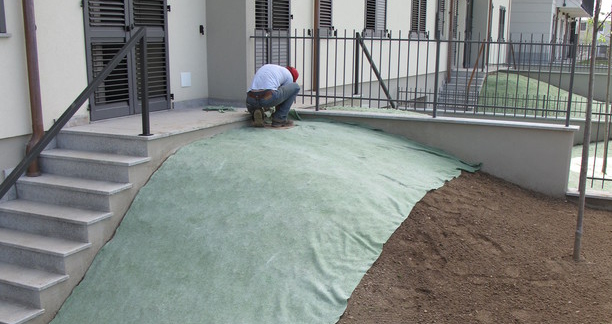 CostruzioneCostruzione giardino con teli preseminati, per avere in breve tempo un prato di qualita'.